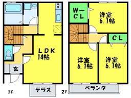 間取り | 3LDK(洋6.1・洋6.1・LDK14・洋6.1) | 方位 | 南西 |
